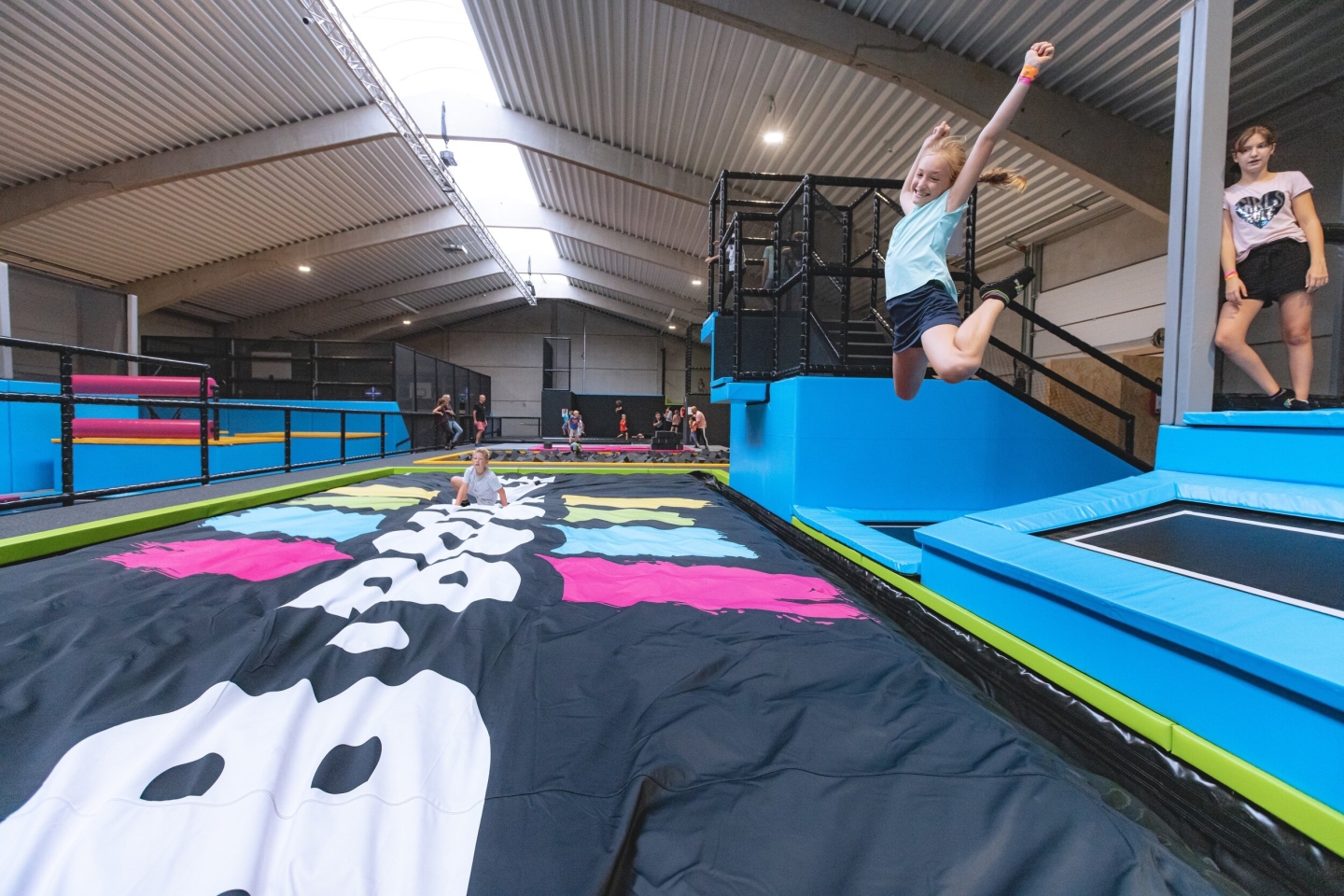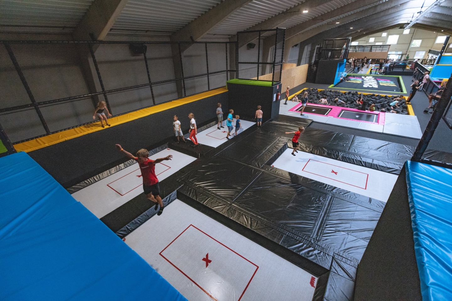 Wat een leuk trampoline park! Kinderen kunnen zich er echt ten volle uitleven. Ouders kunnen ondertussen in de cafetaria iets te drinken bestellen of iets eten.